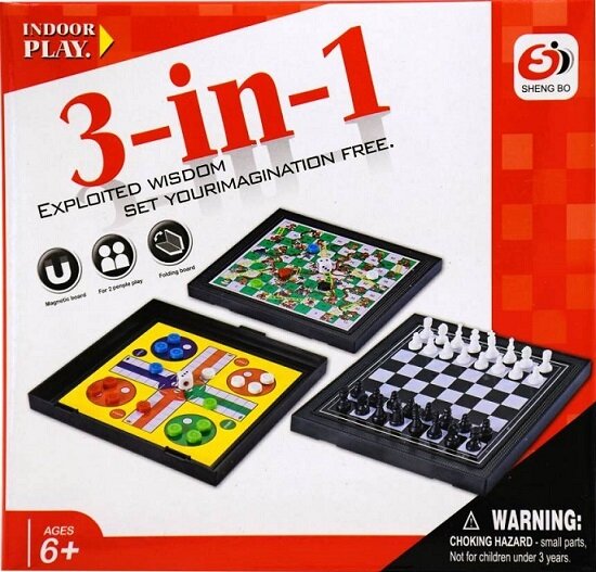 Súbor hier aj na cesty 3v1. Balenie obsahuje box s hracími plochami - Človeče, nehnevaj sa, Hadíky a rebríky, Šachovnica a magnetické kamienky a figúrky. Nevhodné pre deti do 3 rokov. Odporúčaný vek od 6 rokov. Rozmer hracej plochy - 14,5 x 14,5cm