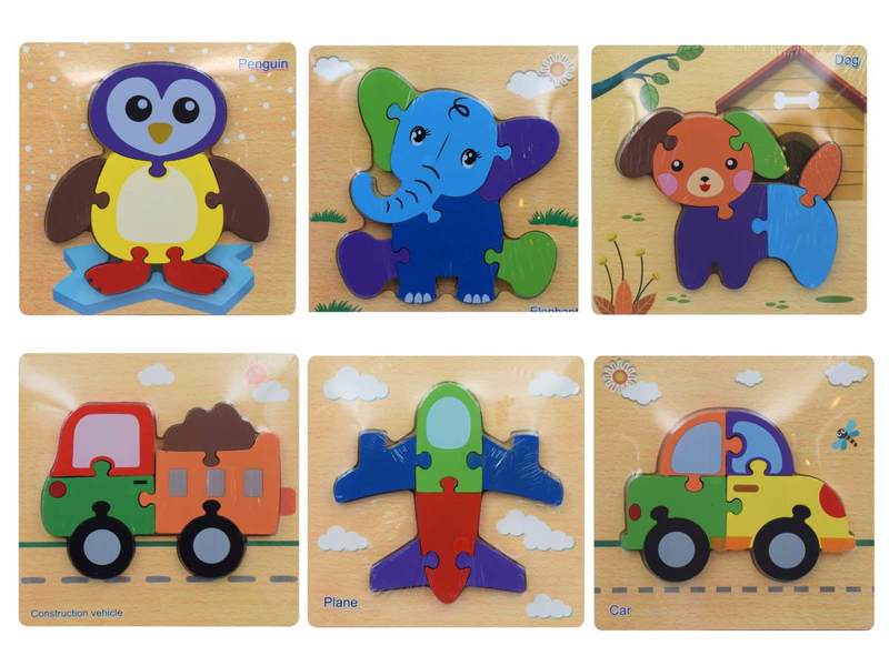 Detské jednoduché drevené puzzle. Puzzle sa skladajú zo šiestich kusov. Možnosť výberu zo šiestich druhov.Rozmer - 14,5x14,5x1cm