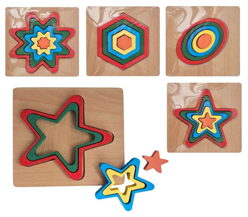 Drevená dúhová vkladačka. Hračka precvičuje rozpoznávanie farieb, jemnú motoriku a logické myslenie. Možnosť výberu zo štyroch druhov. Nevhodné pre deti do 3 rokov.Rozmer - 15x15x1cm