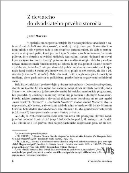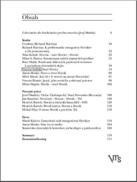 Z histórie je známe, že v minulosti aj v súčasnosti sa pomenovania kmeňov a národov menili či alternovali, ale často sú naozaj iba „výsledkom vedeckej dedukcie a logickej úvahy.“ Slovenská historiografia je veľa dlžná Slovákom v otázke ich etnogenézy. Súbor štúdií, ktorých autormi sú osobnosti slovenskej historiografie, presvedčivo dokladá, že máme svojich predkov, napodiv, čosi aj o nich vieme, a pokojne, ba s istou hrdosťou o nich môžeme hovoriť ako o starých Slovákoch.