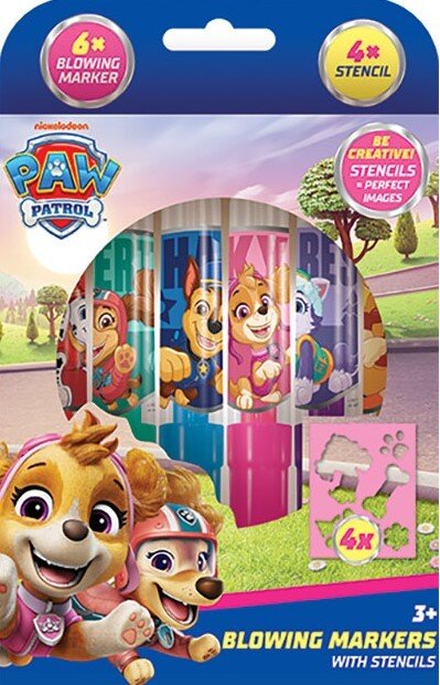 Balenie obsahuje 6 farebných fúkacích fixiek s potlačou a 4 farebné papierové šablónky v obľúbených rozprávkových motívoch.
