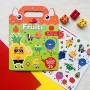 Príbehová sada obsahuje 26 gumolepiek a roztvárateľné pozadie so stranou, na ktorej sa nachádzajú tiene ovocia. Úlohou dieťaťa je prilepiť nálepku na správny tieň. Na každom tieni je zároveň uvedené anglické pomenovanie konkrétneho ovocia orange – pomaranč. Podporte jemnú motoriku, kreativitu a predstavivosť vašich detí prostredníctvom veselých gumových nálepiek, ktoré môžu ľubovoľne nalepovať a odlepovať podľa vlastnej fantázie!