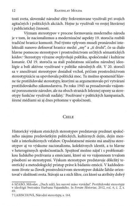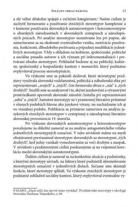 Monografia prináša odpovede na viacero z dodnes nezodpovedaných otázok z oblastí formovania moderného slovenského národa a aktivít slovenského národného hnutia. Ponúka tiež niekoľko nových a pozoruhodných interpretácií slovenských dejín 19. storočia. Výskum etnických stereotypov patrí v ostatných desaťročiach v spoločenských vedách, ako aj v historiografii k priekopníckym témam. Analýza stereotypov má opodstatnené miesto v otázkach zaoberajúcich sa problematikou nacionalizmu, kolektívnych identít a dejín mentalít.