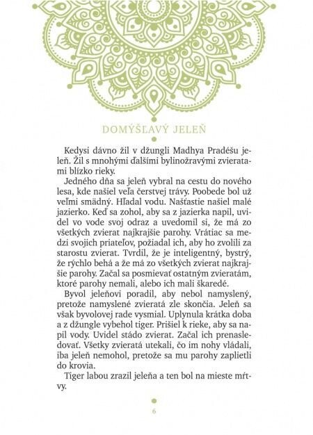 Indické bájky sú plné múdrosti a ponaučenia. Jednoduché príbehy zo života ľudí a zvierat nám ukážu, ako nešťastne môžeme dopadnúť kvôli svojej domýšľavosti, aké dôležité je zamerať sa na to, čo je v živote podstatné a nestrácať čas malichernosťami, ako aj s dobrými úmyslami môžeme niekedy viac uškodiť ako pomôcť, a mnoho ďalších právd, ktoré ľudia poznali už pred stáročiami, a stále sú rovnako aktuálne. Bájky sú ilustrované kresbami detí – víťazov celoslovenskej súťaže Krása ukrytá v rozprávkach.