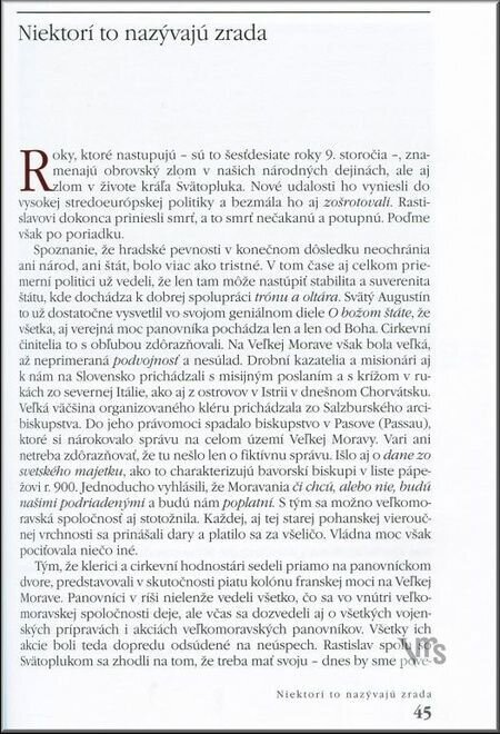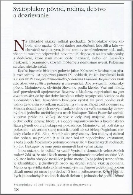 Knižné dielo renomovaného slovenského historika, prvé svojho druhu, vytvára z dochovaných čriepkov dobových prameňov, archeologických nálezov a iných indícií doteraz najkomplexnejší obraz jednej z najvýraznejších postáv z počiatkov našich dejín, veľkomoravského kráľa Svätopluka. Zároveň je jedinečným zhrnutím faktov o dejinných základoch, v ktorých môžeme hľadať počiatky našej štátnosti. Kráľ Svätopluk bol v rokoch 846 – 894 panovníkom rozsiahleho stredoeurópskeho štátu, ktorý vošiel do historiografie pod názvom Veľkomoravská ríša. Súčasťou tohto štátu bolo aj dnešné Slovensko, ktoré v dobových prameňoch vystupuje ako „kráľovstvo Svätoplukovo“. Pramene poznajú podľa mena tri centrá tohto kráľovstva: Nitra, Bratislava a Devín. Už r. 828 bol v Nitre vysvätený prvý kresťanský chrám a roku 880 pápež Ján VIII., na žiadosť Svätopluka, zriadil aj biskupstvo. Svätopluka možno v európskej tradícii porovnávať s takými veľkými panovníckymi menami ako Karol Veľký, anglický kráľ Alfréd Veľký, bulharský kráľ Simeon a iní.