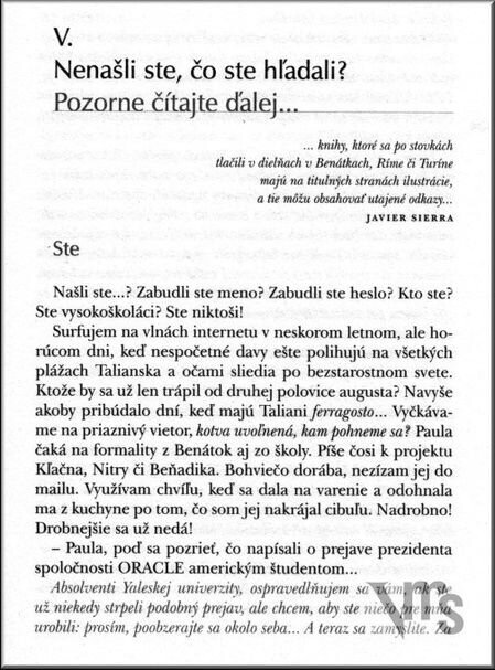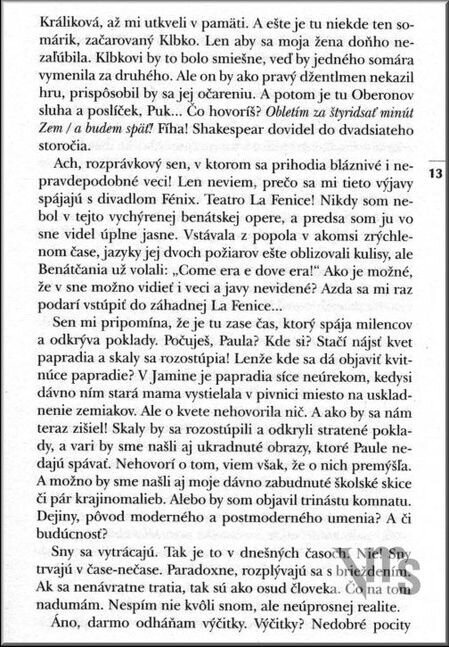 Po úspešnej prvej časti projektu „www.skutočnosť.com“ autor ďalej komponuje osudy ambicióznych súčasníkov (polygrafa Píša a jeho manželky reštaurátorky Pauly) v zložitých, krízou poznačených ľudských vzťahoch. Svojsky nadväzuje na benátske motívy Goetheho, Kollára, T. Manna a ďalších, aby optikou blízkou Rilkemu či Brodskému nazeral pod povrch skutočnosti. Je to prenikavý, fascinujúci až mrazivý pohľad nielen na ohrozené Benátky, novodobý Noemov koráb, ale hlavne na človeka dnešných čias, ktorý uchvátený ľudskými možnosťami často podlieha kúzlu Second Life a zakrýva si zrak, že nielen Acqua Alta, ale i vysoká hladina informácií môže zaplaviť a ohroziť náš bezstarostný svet.