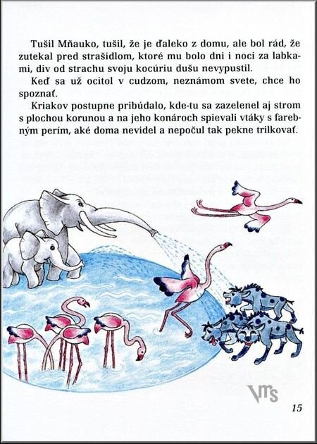 Keď gazdiná prichytí Mňauka maškrtiť smotanu, pustí sa kocúrik na útek, ktorý ho zavedie veľmi ďaleko - až kamsi do Afriky. Tu v službách levieho kráľa spoznáva mnoho zvláštnych zvierat a prežíva rozličné dobrodružstvá, aby sa nakoniec zmúdrený vrátil na svoj rodný dvor. Opisy zvieracej ríše v africkom buši zarážajú autentickými detailami, veď autor tejto nádherne ilustrovanej knihy afrických dobrodružstiev strávil na čiernom kontinente nejeden rok.