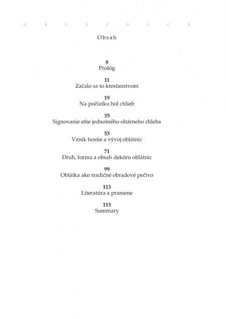 Nevšedné knižné dielo, výsledok mnohoročnej objavnej práce popredného etnografa, rekonštruuje v celoeurópskom kontexte vývoj oblátnic, ich tvarové premeny, techniky zhotovenia a ikonografiu výzdobných motívov. Podáva množstvo unikátnych informácií a ilustrácií o týchto pozoruhodných artefaktoch našej kultúrnej histórie.