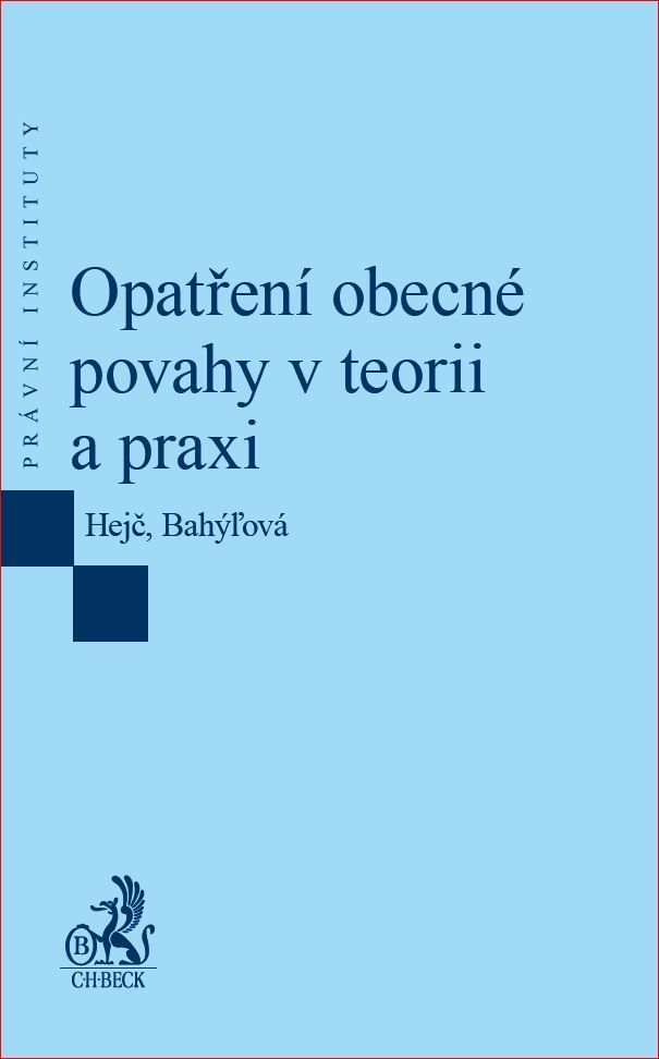 Jde o první publikaci na českém trhu, která nabízí ucelené zpracování právního institutu opatření obecné povahy. Tato forma činnosti veřejné správy, resp. typ správního aktu, má za sebou desetiletí své existence v českém právním řádu. Za tu dobu se opatření obecné povahy dostalo do širší pozornosti právních teoretiků a praktiků; zejména pak soudní praxe a judikaturní činnost především Nejvyššího správního soudu se významně podílela na tom, jakým způsobem je přistupováno k interpretaci a aplikaci tohoto institutu. Na základě poctivě zpracovaného teoretického pozadí a analýzy praktického užívání opatření obecné povahy v českém prostředí autoři poukazují na problémy, jež v případě opatření obecné povahy vyvstávají, a nabízejí jejich řešení. Publikace je určena pro čtenáře z řad odborné právnické veřejnosti (advokáti, soudci, pracovníci správních úřadů, akademici), ale též pro ostatní veřejnost, jež může s touto formou realizace správní činnosti přijít do styku.