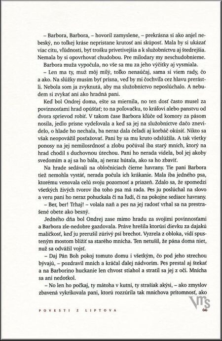 Vybraná kolekcia vyše štyridsiatich najkrajších povestí pozýva čitateľa na zaujímavú prechádzku krajom pod Západnými Tatrami. Povesťový výlet do Liptova nám priblíži tajomstvá a zaujímavosti liptovského nárečia, mnohých miestnych názvov, nazrieme do hrdých liptovských hradov, zoznámime sa s dávnymi hrdinami, bojovníkmi, zbojníkmi, budeme hľadať poklady zakliate i stratené, stretneme rázovité postavičky i miestnych figliarov. Nechýbajú ani novšie povesti a príbehy založené na reálnych udalostiach. Vrelo odporúčame všetkým priateľom Liptova, od tých najmladších až po pamätníkov....