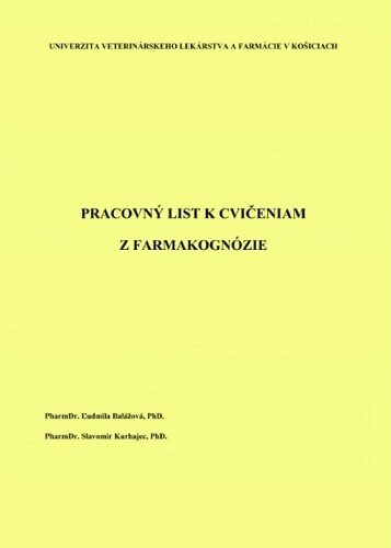 Skriptá sú určené na výučbu praktických cvičení z predmetu Farmakognózia. Úvodné kapitoly sú zamerané na definíciu základných pojmov, farmakologických účinkov. prehľad účinných látok a základné techniky prípravy mikroskopických preparátov. Jadro skrípt predstavuje kapitola, v ktorej sú uvádzané významné drogy. Skriptá sú koncipované štýlom, ktorý vedie čitateľa k aktívnemu overovaniu si nadobudnutých vedomostí, a to hlavne vyplňovaním vybraných úloh a zakresľovaním mikroskopických preparátov.