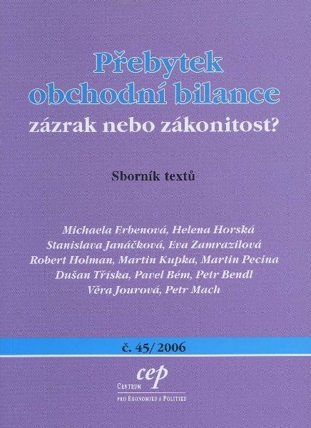Nový sborník CEP č. 45/2006 shrnuje texty ze tří ekonomických seminářů, které Centrum pro ekonomiku a politiku uspořádalo ve druhé polovině roku 2005. Protože nejobsáhlejší jsou příspěvky k přebytku obchodní bilance, rozhodli jsme sborník po obchodní bilanci pojmenovat a připojit dva zajímavé semináře o antimonopolní politice a strukturálních fondech.
