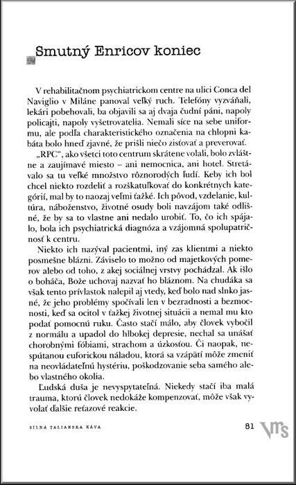 Slovenská autorka kriminálnych príbehov žije v Taliansku a pracuje ako tlmočníčka a súdna prekladateľka. A práve toto prostredie jej poskytlo dostatočné množstvo námetov pre jej autentické poviedky. Pútavo a sviežo rozpovedané príbehy sa zakladajú skutočných udalostiach. Vtiahnu vás do života ľudí, ktorí sa pre svoju naivnosť, nevedomosť, dôverčivosť či chamtivosť, často len zhodou náhod, dotkli zločinu, existenciálneho ohrozenia, hraničných životných situácií...