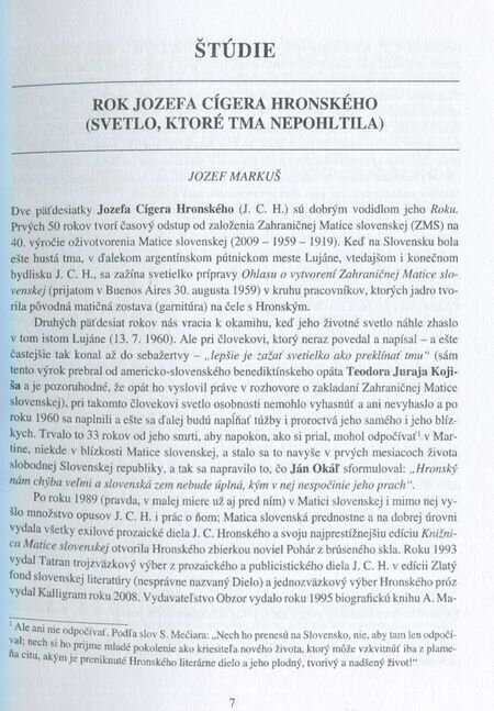 Jozef Markuš: Rok Jozefa Cígera Hronského (Svetlo, ktoré tma nepohltila)