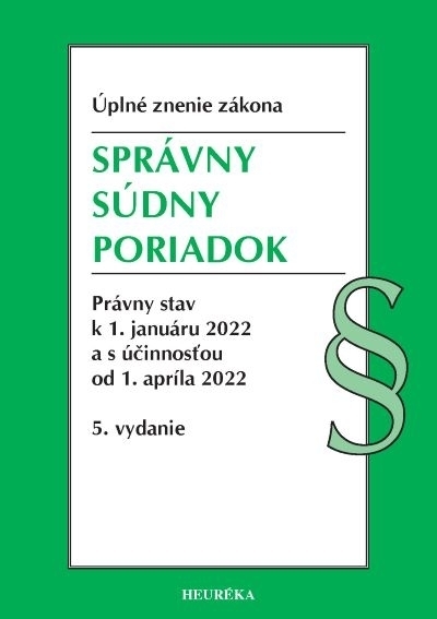 Publikácia obsahuje aktualizované úplné znenie zákona č. 162/2015 Z.z. Správneho súdneho poriadku s právnym stavom k 1. januáru 2022, a so zvýraznenými zmenami poslednej novelizácie zákona č. 512/2021 Z.z. s účinnosťou od 1. apríla 2022.